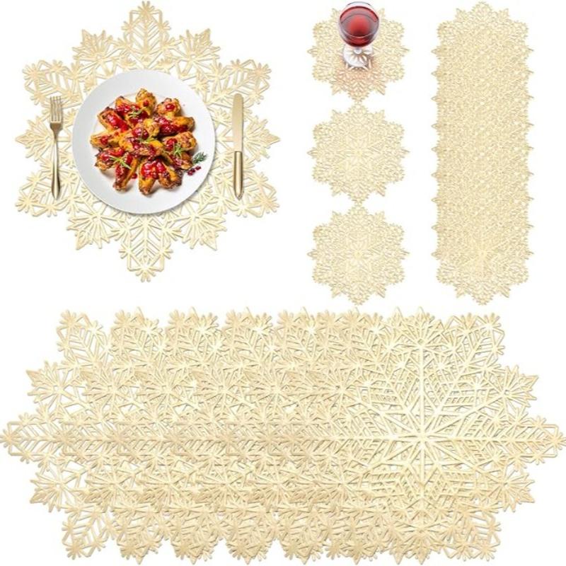 1-20 STÜCKE Einfarbige Schneeflocke PVC Tischmatte Hohl Platzset Hitzebeständige Isolationsuntersetzer Pads Schüssel Weihnachten Heimdeko