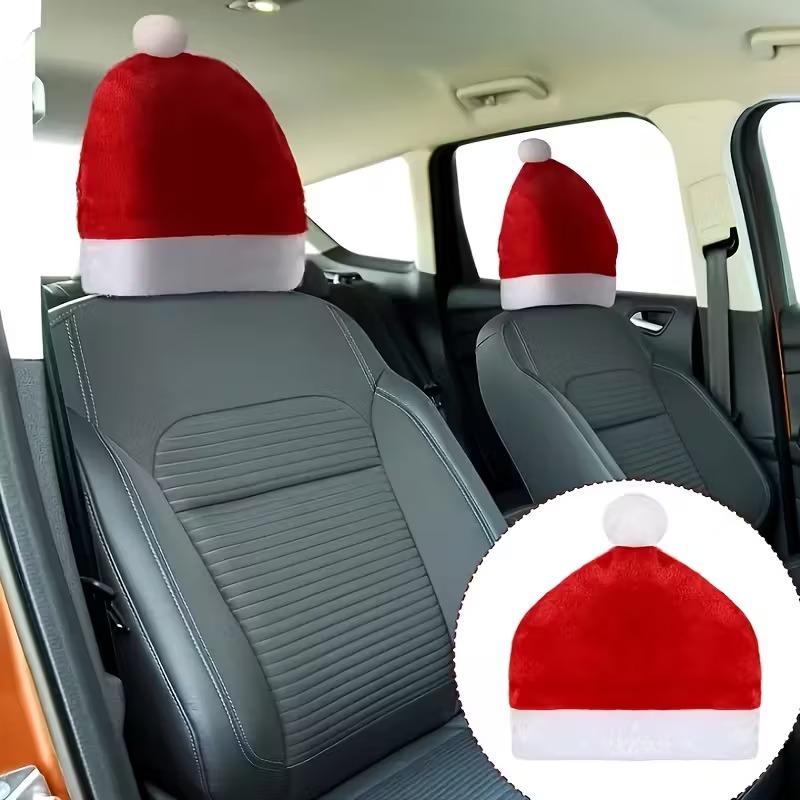 Weihnachts-Autositz-Kopfstützenbezug Weihnachtsornamente Sitzschutz Weihnachtsmannmütze Autodekoration Autositzzubehör