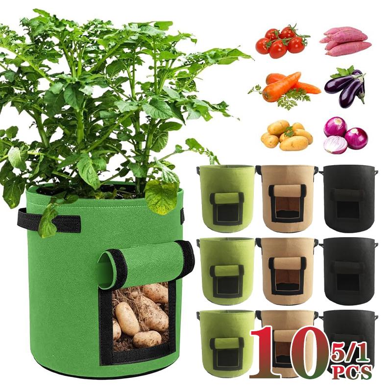1/5/10 STÜCKE 5/10 Gallonen Pflanzsäcke für Garten Gewächshaus Kartoffeltopf Gemüse Anbausäcke Feuchtigkeitsspendende Gartenwerkzeuge