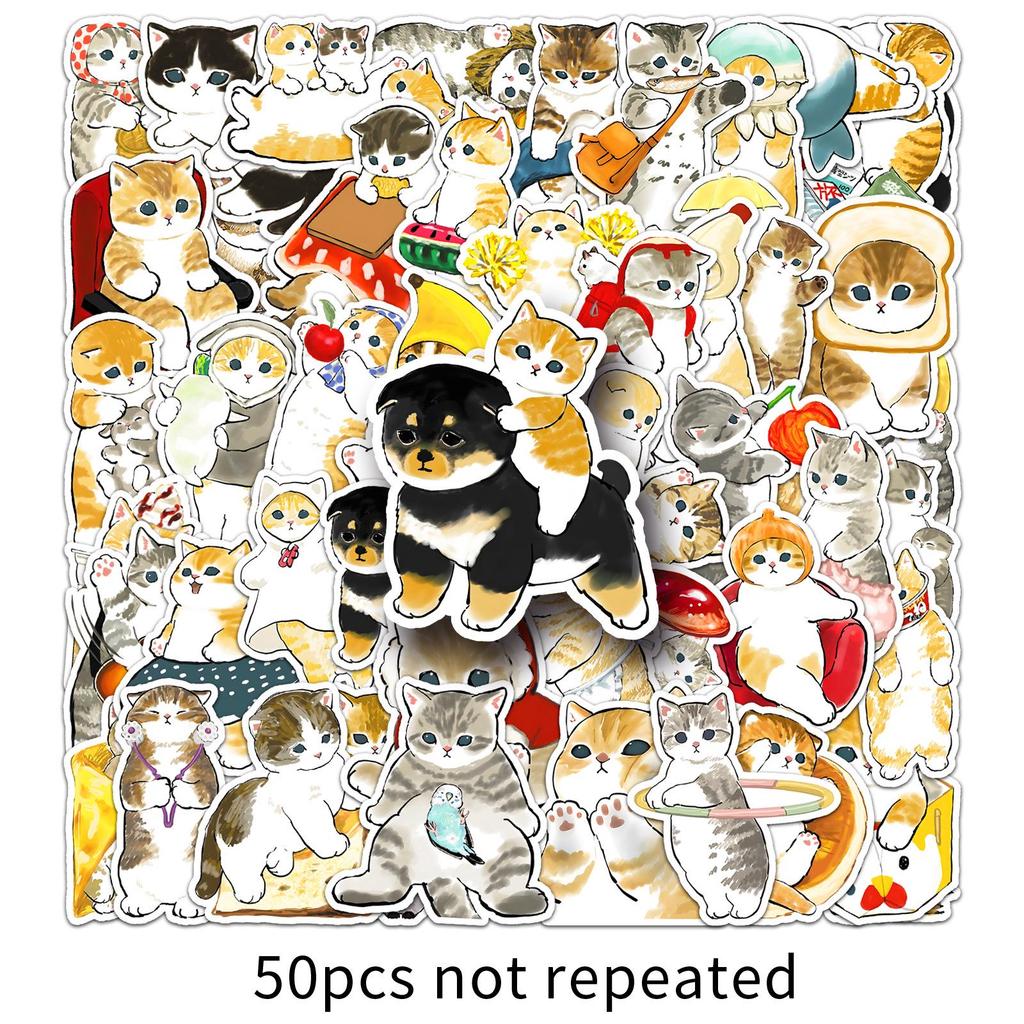 50 Cute Hand-Drawn Kitten Stickers: Waterproof Decals for Notebooks, Suitcases, Journals, and Water Bottles