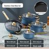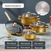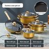 12-teiliges Antihaft-Edelstahl-Kochgeschirrset mit vergoldeten Griffen