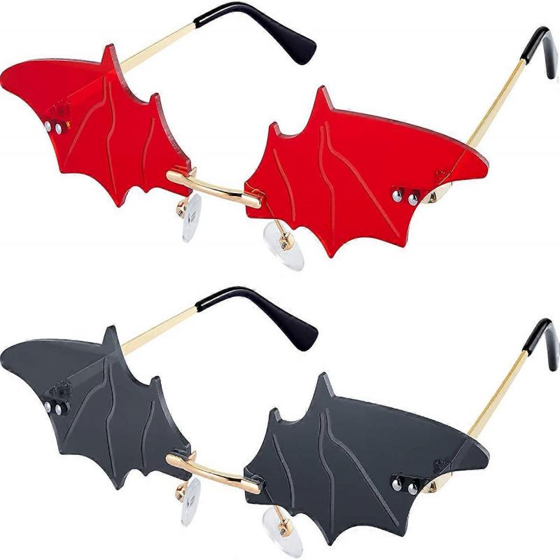 2 Paar Fledermausform Sonnenbrillen Vintage randlose Sonnenbrillen lustige Brillen Eyewear mit Aufbewahrungsbeutel und Brillenputztuch für Männer und Frauen