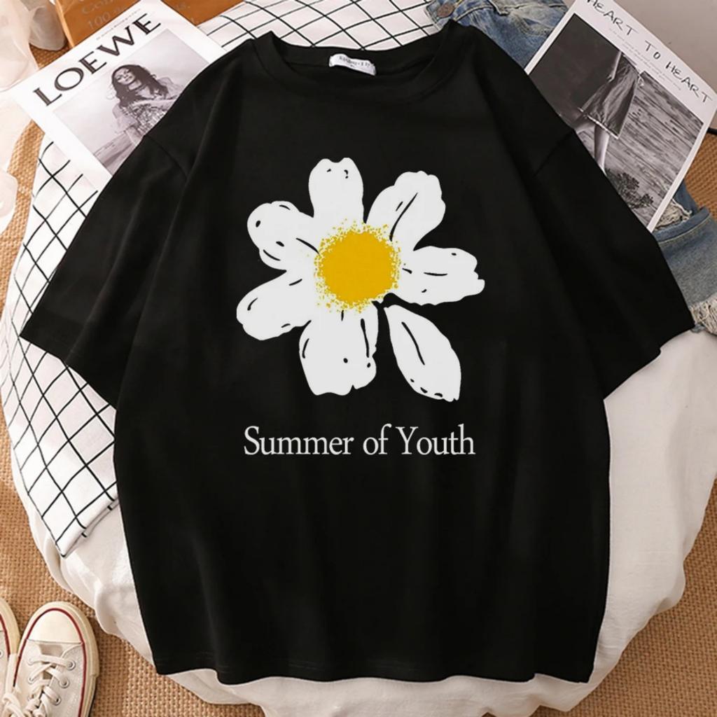 Atmungsaktives T-Shirt Kleine weiße Gänseblümchen Hip Hop Sport Kurzarm T-Shirt Damen Bequem 2022 Sommer Weich Rundhals Camisetas