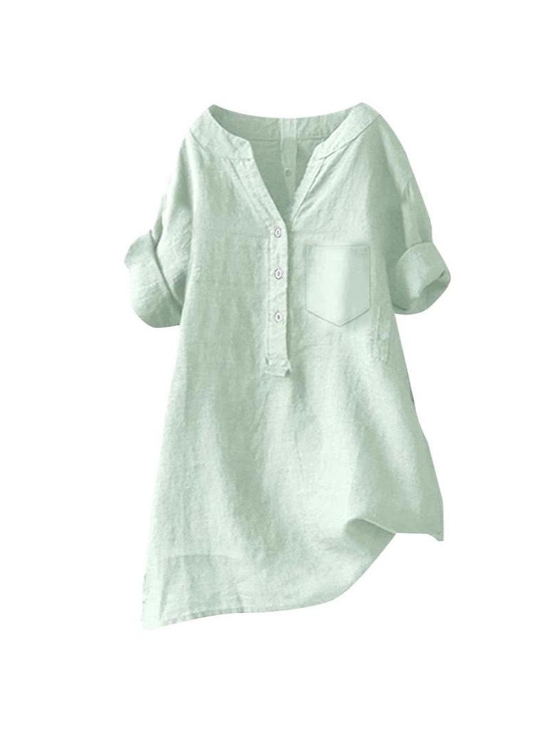 Werten Sie Ihre Garderobe mit diesem stilvollen Langarmtop mit Stehkragen auf, gefertigt aus einer Mischung aus hochwertiger Baumwolle und Leinen für ultimativen Komfort und Atmungsaktivität.. Das einfarbige Muster und das fachmännisch geschnittene Design machen es zu einer vielseitigen Wahl für jeden Anlass. Ausgezeichnet durch sein auffälliges Patchwork und seine gesteppten Verzierungen verleiht dieses Oberteil Ihrem Outfit eine einzigartige Note.. Die langen Ärmel und der elegante Stehkragen sorgen für eine moderne, raffinierte Silhouette, perfekt für sowohl legere als auch formelle Anlässe.