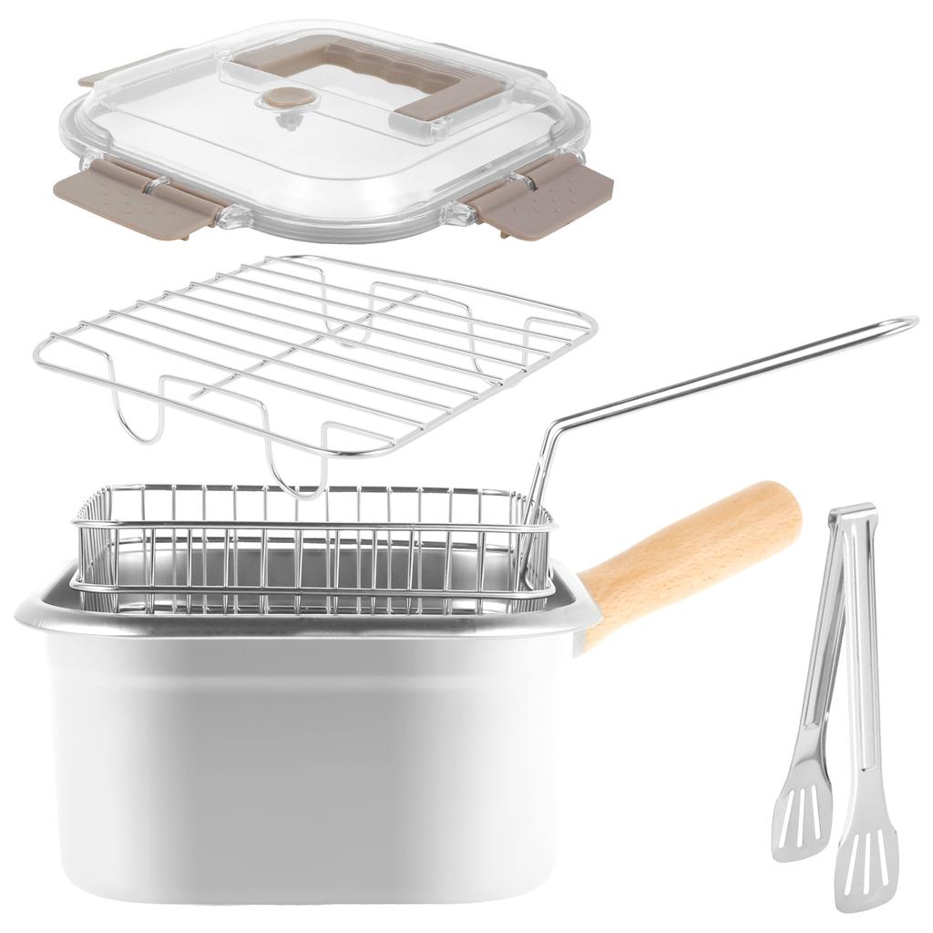 Multifunktionaler Fritteusentopf Edelstahl Bratpfanne mit Korb und Griff Tragbare Quadratische Fritteusen für die Küche