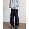 Men's Winter Trendy Workwear Jeans with Large Pockets, Loose Fit, Floor-Length, Vintage Solid Color Wide-Leg Pants