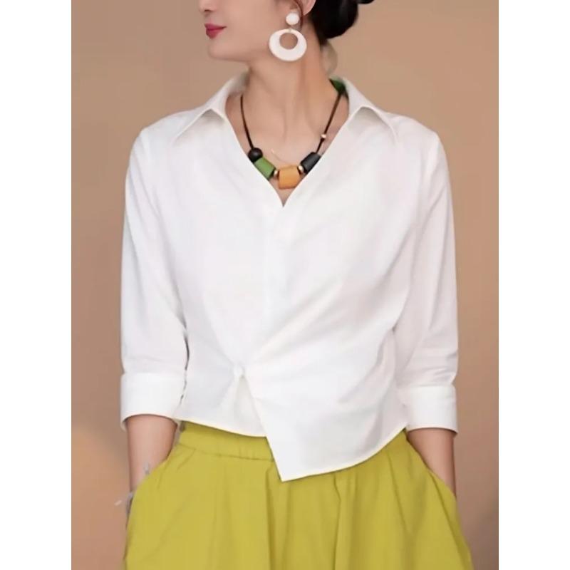 Weißes Damenhemd, Sommer, neuer Stil, modisch, lässig, asymmetrisches Design
