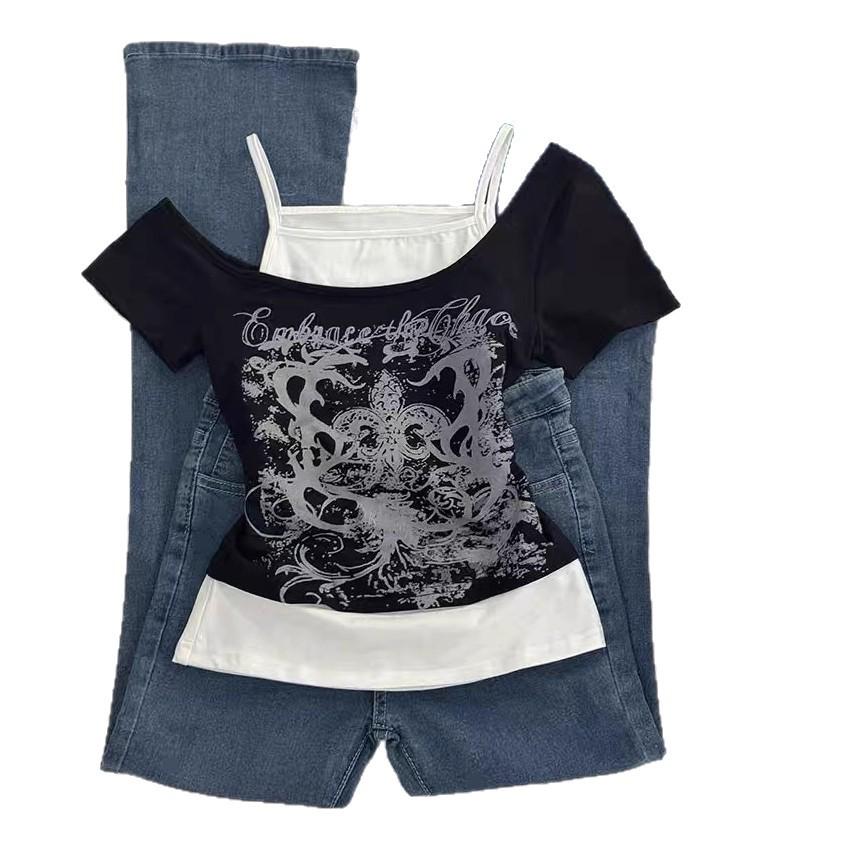 Muster: Sommer y2k Retro schmal geschnitten Design Fake Two-Piece T-Shirt