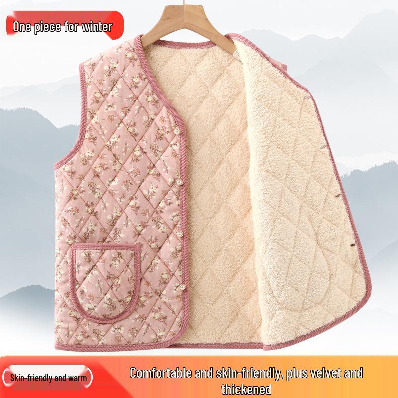Elegante Herbst/Winter Samtweste für Frauen mittleren Alters - Warm, stilvoll, Oberbekleidung mit Blumendruck.