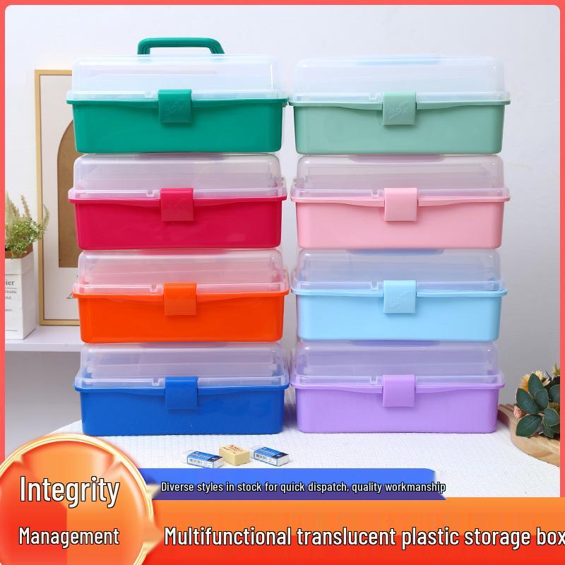 Durchsichtige Kunststoff-Dreischicht-Faltaufbewahrungsbox für Kunst, Nägel, Eisenwaren, Make-up und Schreibwaren