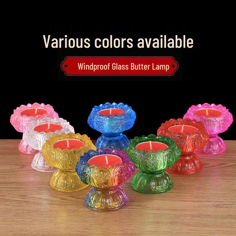 Siebenfarbige Glasur Lotus Kerzenhalter für Zuhause & Buddhistische Opfergabe
