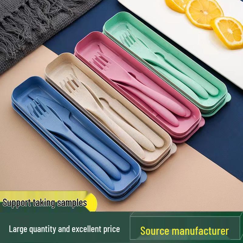 Kindergeschirrset aus Weizenstroh: Tragbares Messer-, Gabel- & Löffel-Trio - Ideal für Studenten & Reisen
