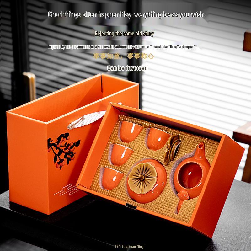 Persimmon Kung Fu Tea Set - Ideal Wedding, Birthday, or Event Gift; Custom Logo Available