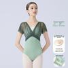 Damen Ballett- und Gymnastik-Trikot: Geraffte Kurzarm-Tanzbekleidung für Yoga und Eiskunstlauf.