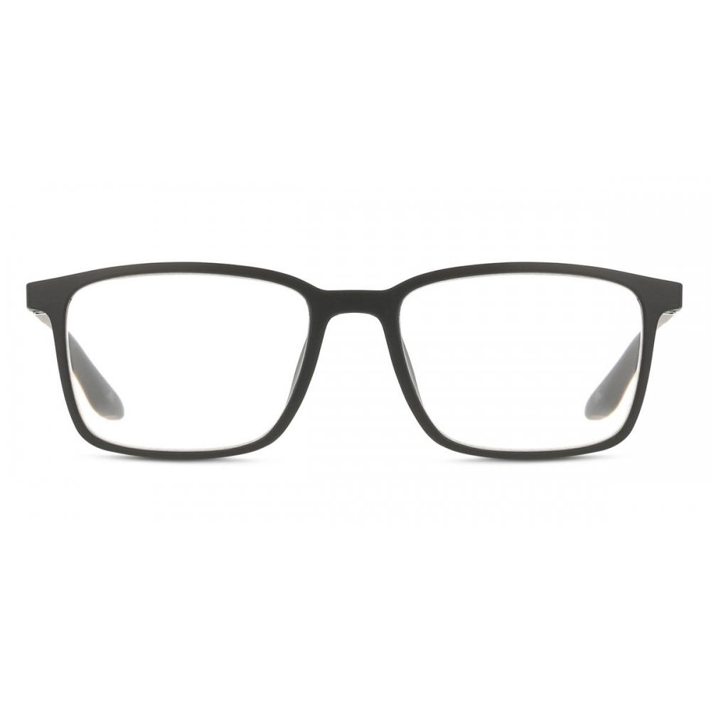 The frame is made of polycarbonate, providing durability and lightweight comfort. The lightweight polycarbonate material ensures comfort during long wear and maintains a sophisticated appearance with its matte finish.