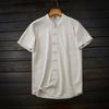 Cool and Breathable, Chinese-Style Linen-Like, Export Surplus Men's Summer Skin-Friendly Soft-Touch Small Stand-Up Collar Short-Sleeve Shirt