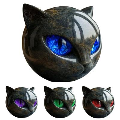 Marmor Textur Harz Stein Skulptur Bernstein Augen Handgeschnitzte Katze Stein Halloween Dekor