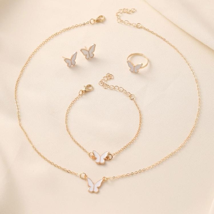 Contemporary Butterfly Necklace Bracelet Ring Earrings Jewelry Set Craftsmanship for Allergy Free Wear and Lasting Shine