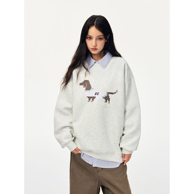 Jungle Tiger Fun Cross-Stitch Puppy Crewneck Sweatshirt for Men, Street Style, 420g Heavyweight Thickened Couple's Top for Women