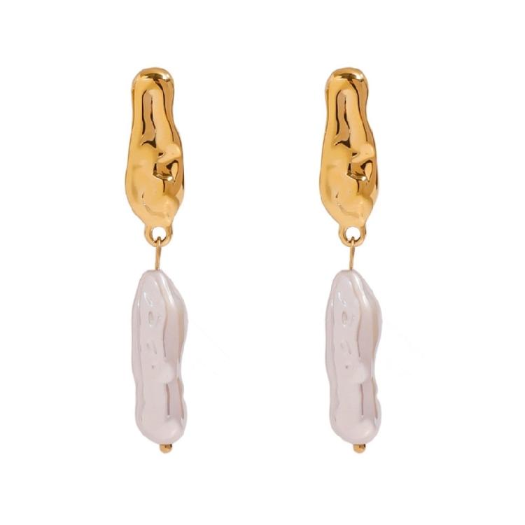 Entdecken Sie den Reiz unserer Ohrringe aus unregelmäßigen Edelstahlperlen, gefertigt aus Edelstahl und Naturperlen, die ein einzigartiges Design aufweisen, das Ihre Individualität unterstreicht.