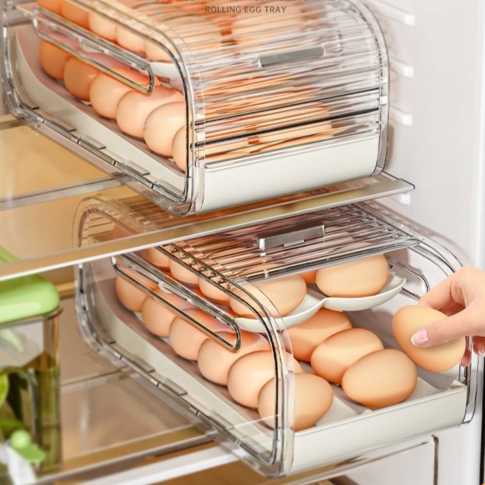 Kunststoff Automatischer Rollender Eierhalter Transparent Eier Aufbewahrungsregale Eierbehälter Kühlschrank