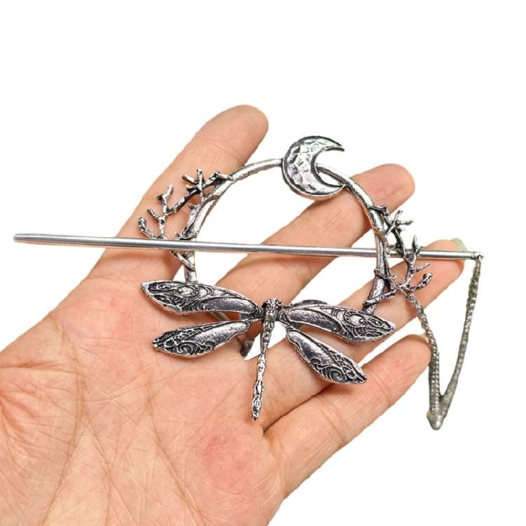 Antique Silver Dragonflies Moon Hairpin Artistic Hair Styling Accessory For Women Secure Various Hair Types Decoration