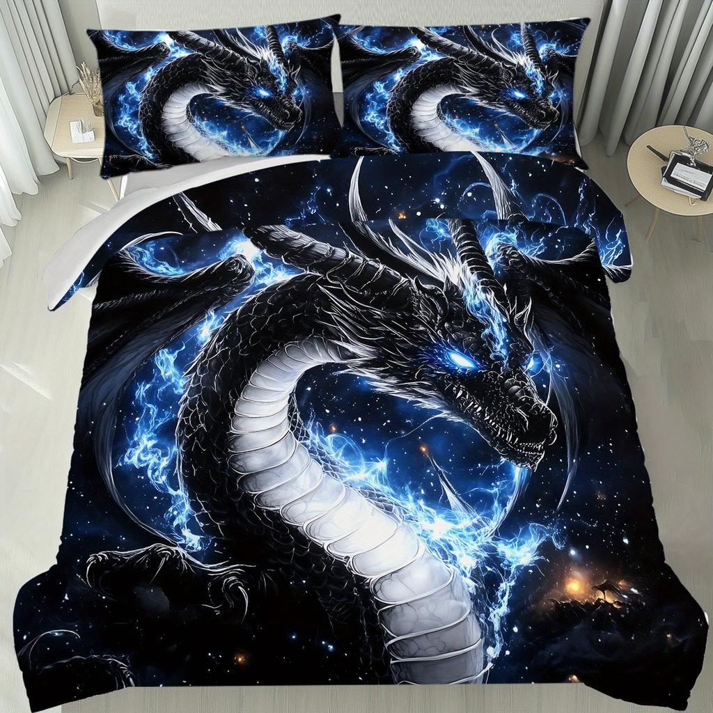 Latacaca 2/3-teiliges Schwarzer Drache Kosmisch Bettbezug-Set, Knitter- und Ausbleichbeständig Maschinenwaschbare Bettwäsche mit Kissenbezügen