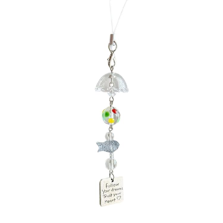 Artistic Fish Windchime Mobile Phone Lanyard Colorful Acrylic Beaded Keychain for Casual or Formal Occasions