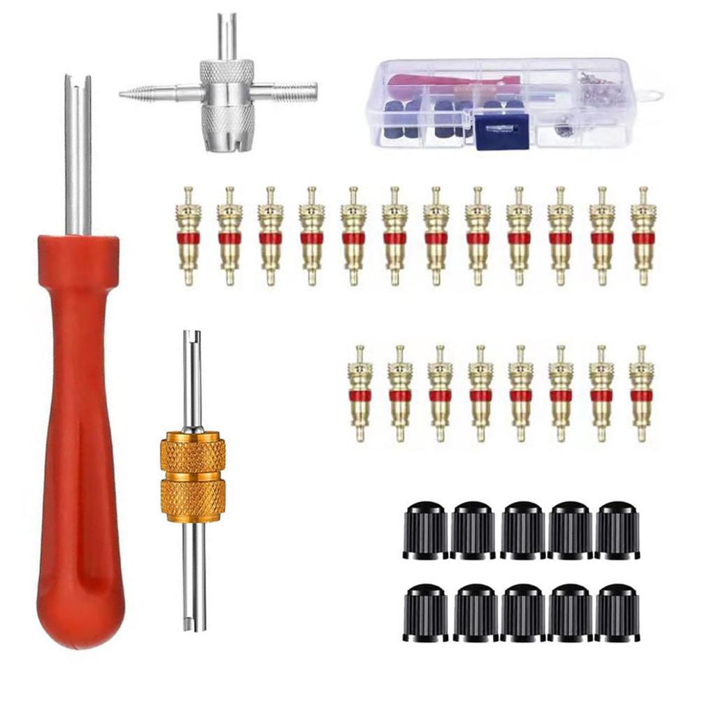 Tire Valve Core 33-Piece Set, Tire Replacement, Insect Turner Screwdriver, Durable, Conversion Adapter, Removal,