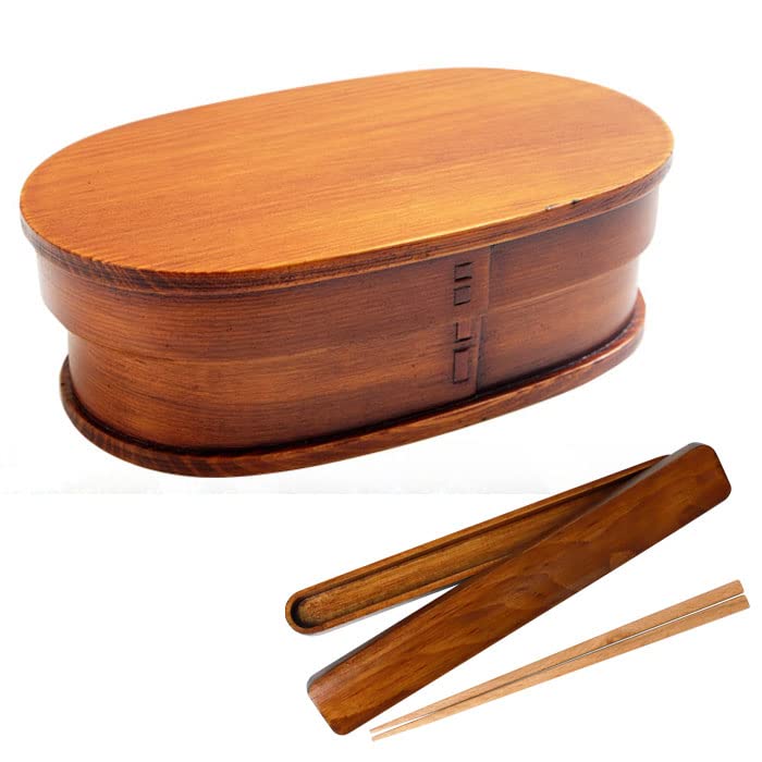 Miyoshi Lackwaren Honpo Magewappa Bento Einzel 650ml Inklusive Stäbchen Geeignet für und Hergestellt aus Holzbox, Oval, Etage, Fassungsvermögen, Set, Kinder,