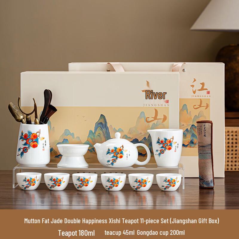White Porcelain Auspicious Xishi Teapot Tea Set