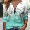 Vibrant Floral Print Long Sleeve Zip-Up T-Shirt - Soft, Breathable, Relaxed Fit for Spring & Fall - Womens Casual Wear for Everyday Comfort