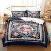 Vintage Court Print Bettbezug, Digitaldruck Blume Feder Dreiteiliges Set