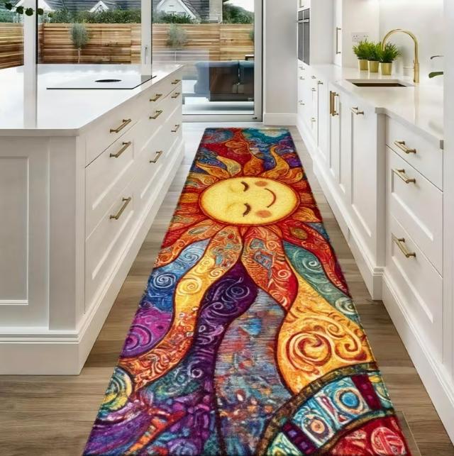 1 Böhmische Sonne Totem Laufmatte mit farbenfrohem Mandala-Design und böhmischen Mustern Geeignet für Küche, Flur, Wohnzimmer