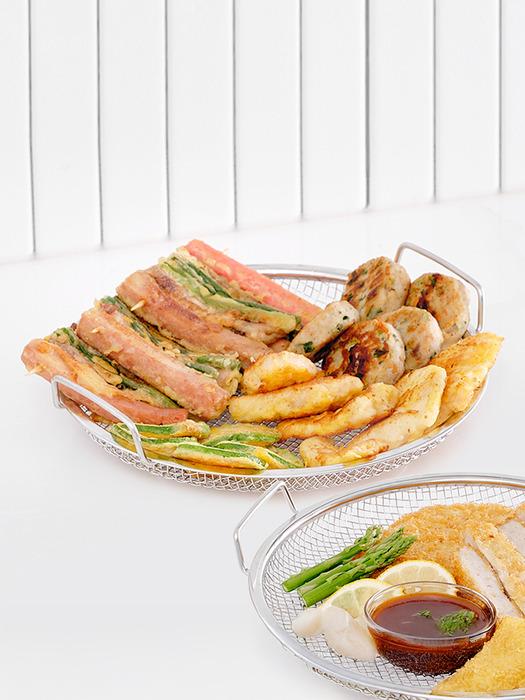 Wiedergeboren. J Edelstahlgriff-Tablett 24cm / Gitter-Frittierkorb