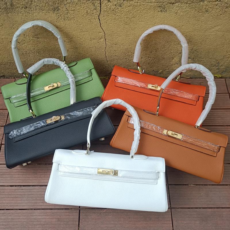 Mittelalterliche Horizontale Handheld-Tasche 35cm Neu Große Kapazität Pendler Ein Schulter Unterarmtasche Kopfschicht Togo Echtes Rindsleder