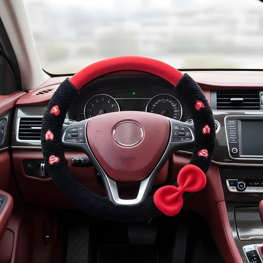 Auto Lenkradabdeckung Plüsch Niedliche Schleife Automobil Innenzubehör Plüsch Lenkradschutz Abdeckung Für Anhänger LKW