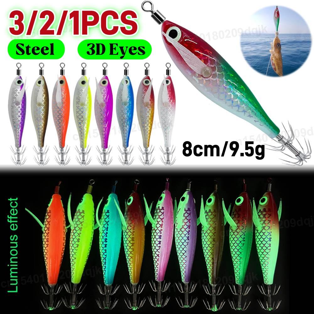 1-3 Stück leuchtender Tintenfischköder Haken Salzwasser Angelköder Künstliches Ei Holzgarnele Köder Meeresfischen Oktopus Sepia Tintenfischköder