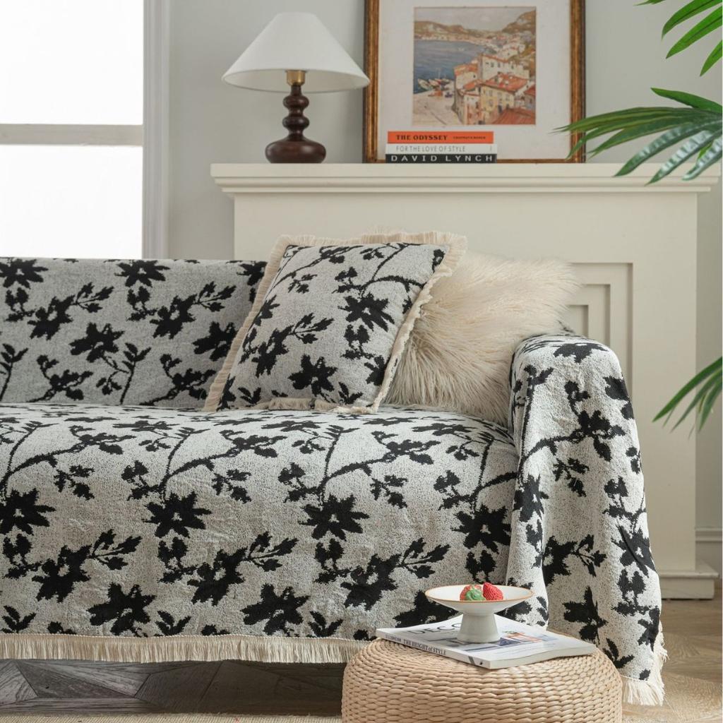 Exquisite sofa towel anti-cat scratch jacquard black flower retro thick sofa cover blanket factory direct supply