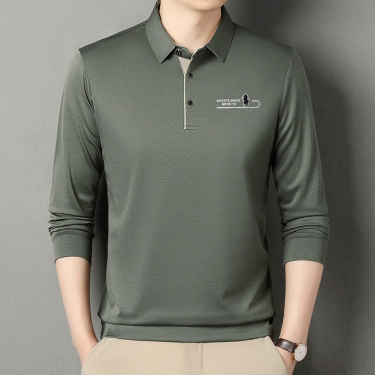 Langarm Poloshirt Herren Frühling und Herbst Lässig All-Match Kragen Papa Unterhemd T-Shirt