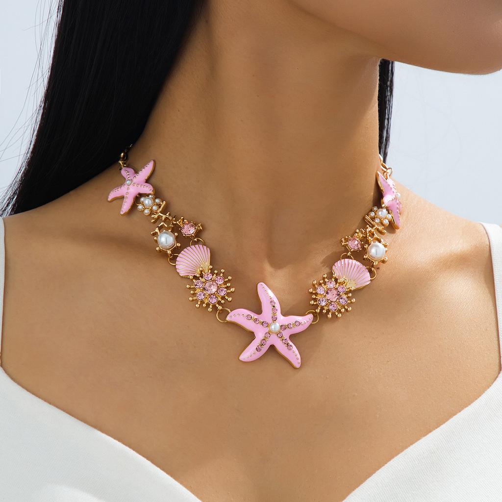 Muschel-Halskette Leichter Luxus Nische Strandresort-Stil Mode Persönlichkeit Farbe Seestern Halskette Schlüsselbeinkette Damen