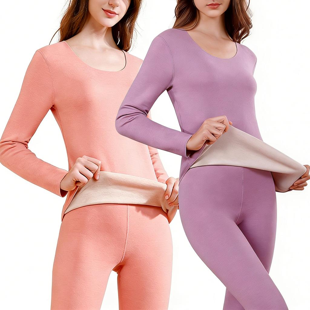 1 Set Thermal Underwear for Women Long Johns With Fleece Lined Long Sleeve Top & Bottom Base Layer Cold Weather