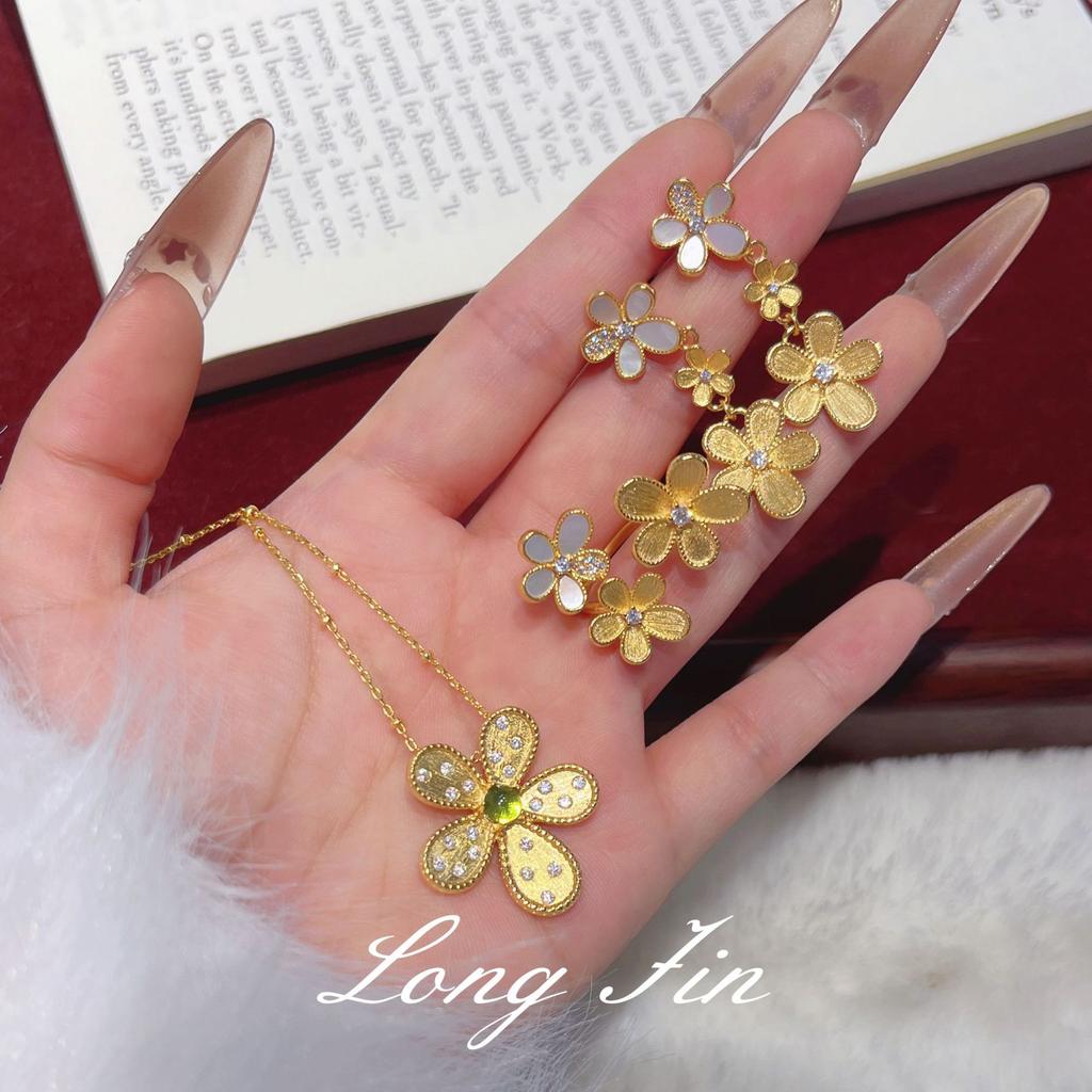 Italienischer Gebürsteter Handwerkskunst Fünfblättrige Blume Fritillaria Ring, Ohrringe, Halskette, High-End Leichter Luxus Live-Übertragung, Einzelstück wird verschickt
