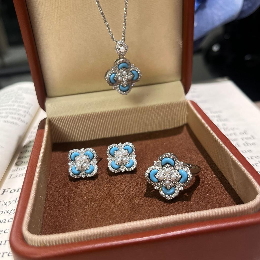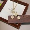 Leichter Luxus Retro Hofstil Perlmutt Vierblättriges Kleeblatt Blume Halskette Ohrstecker High-End Schmuckset