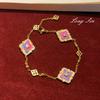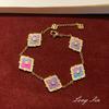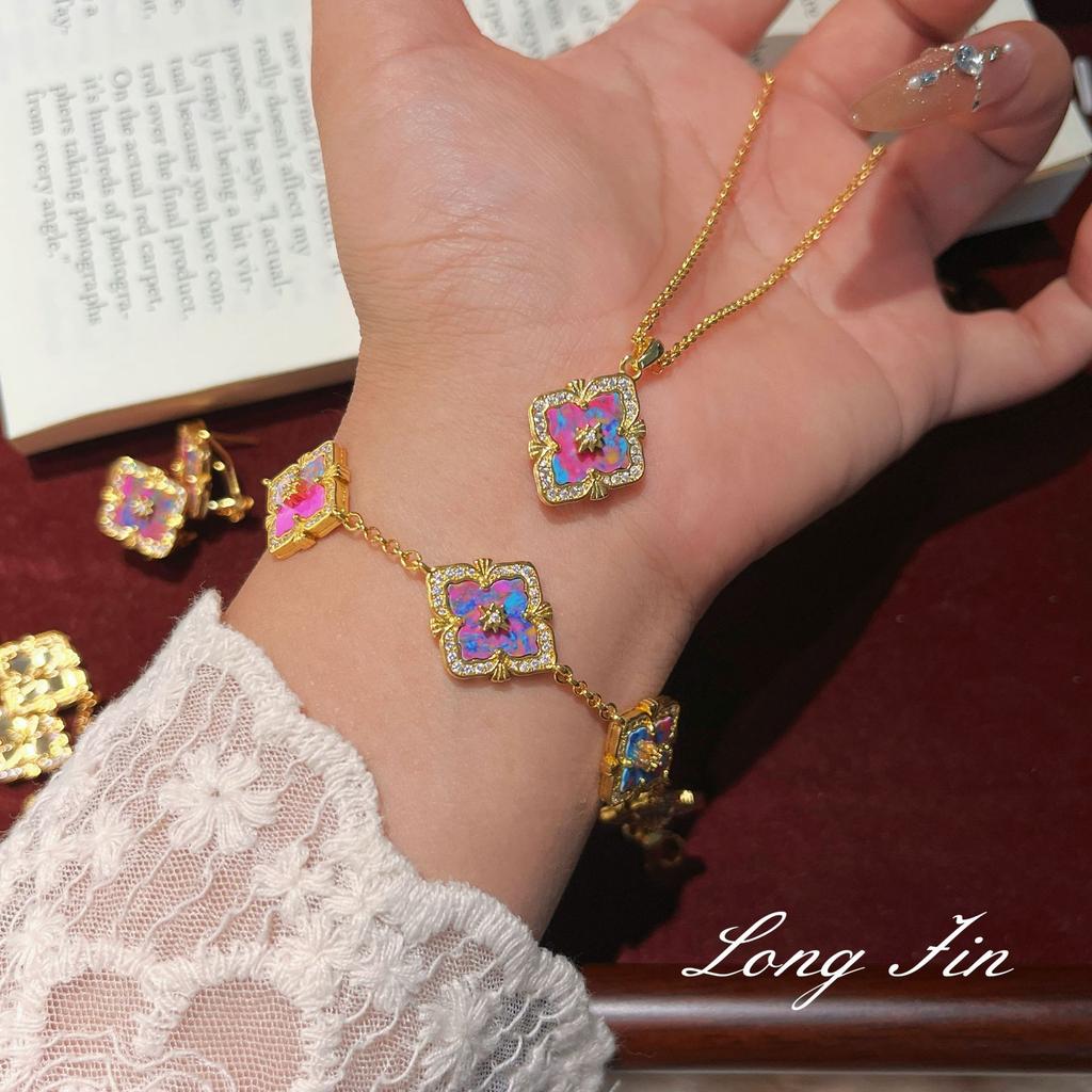 Italian Retro Court Style Color Treasure Four-Leaf Clover Set Exquisite High-End Versatile Temperament Necklace Bracelet Earrings