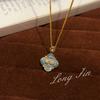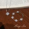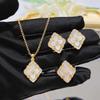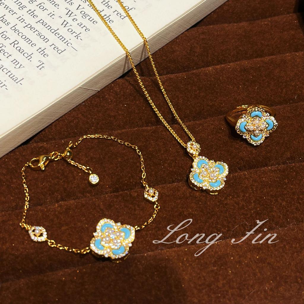 Light Luxury Retro Court Style Turquoise Imitation Pearl Four-Leaf Clover Necklace Bracelet Ring Light Luxury High-End Set