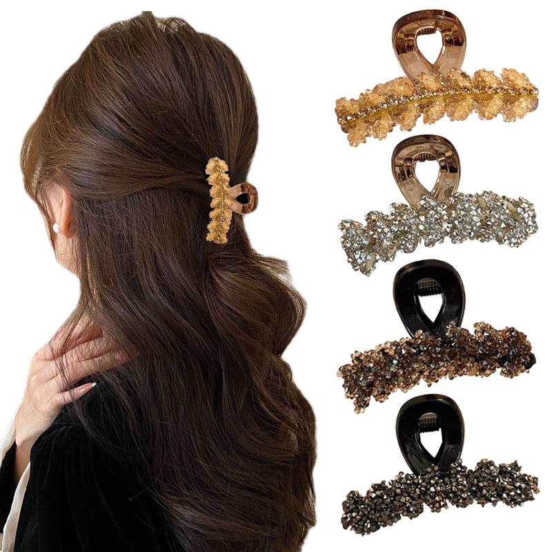 Neue Strasssteine Blattförmige Haarklammer Kleine Größe Kristall Weizen Haifischkieferklemme für starken Halt Dutt Frauen Mädchen Tägliche Anwendung Kopfschmuck