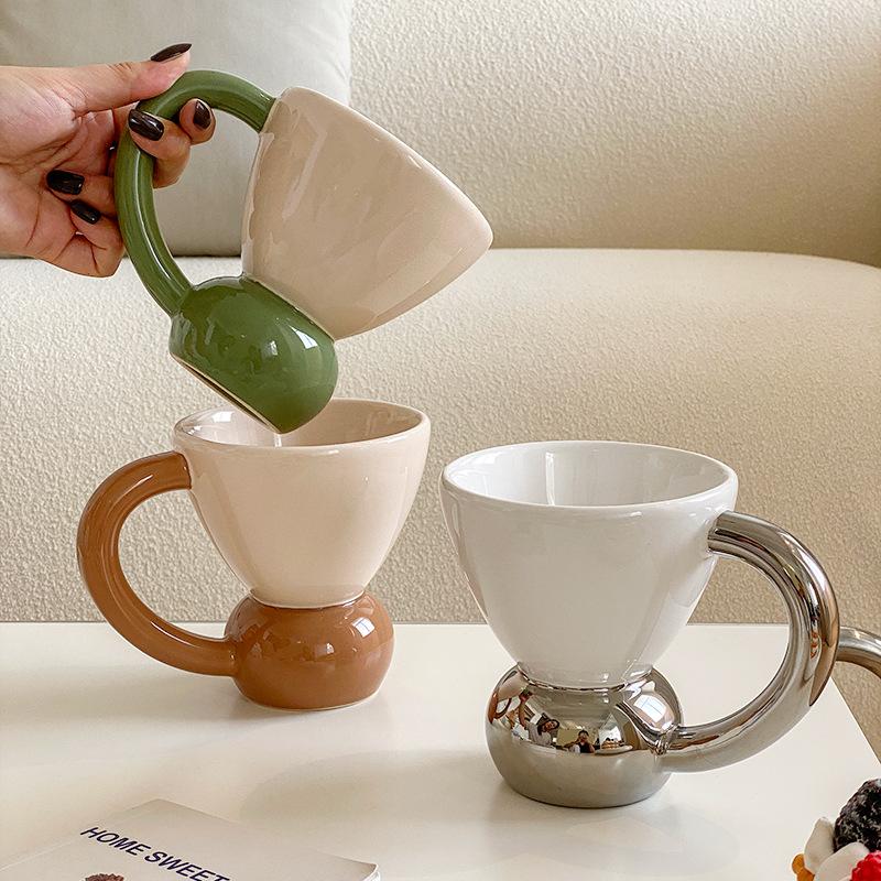 Retro Milchkaffee Farbe hoher Keramik-Wasserbecher Nischen-Designgefühl Haushalt Großer Griff Frühstückstasse Hitzebeständig Farbkasten