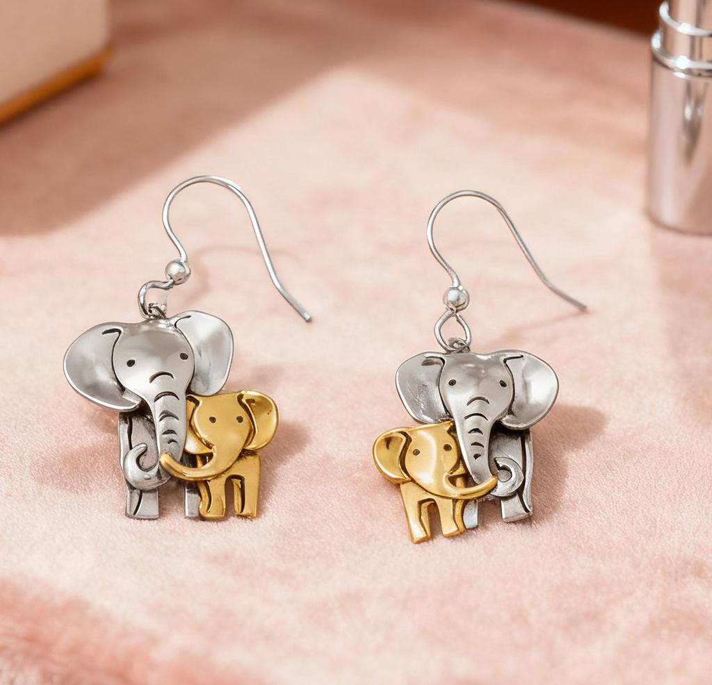 Stylish And Versatile Elephant Mother And Baby Elephant Alloy Earrings Are Suitable For Daily Simplicity