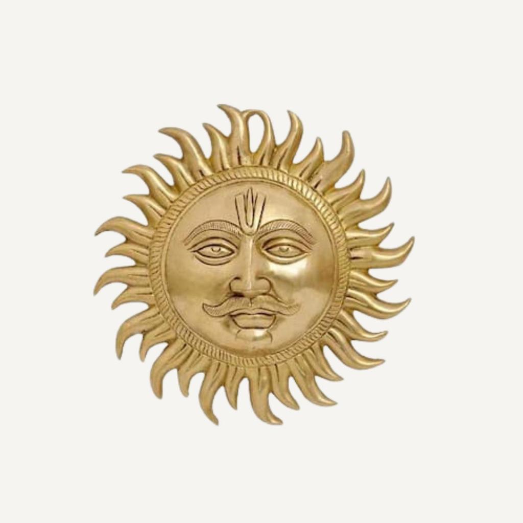 Ashtadhatu-Messing-Mischung, Wandbehang, Sonnen-Götzenbild, Surya Narayan Götzenbild - 18 cm